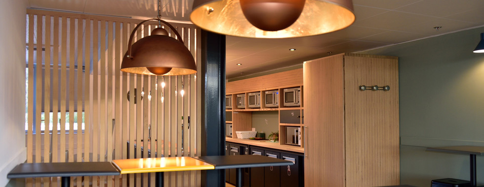 Nous avons aménagé plusieurs espaces comme la salle de repos des employés, la cafétéria et les espaces communs.